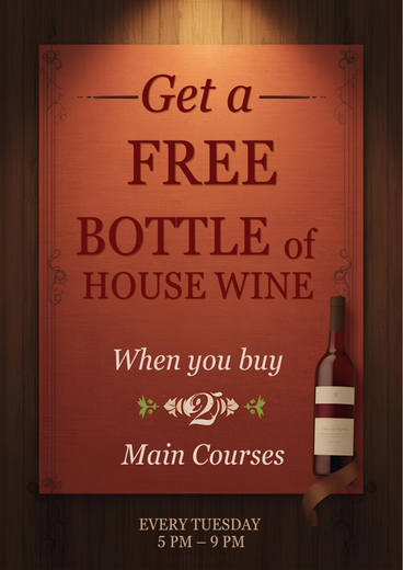 YES YOU HEARD THAT RIGHT! BUY 2 MAINS AND RECEIVE A BOTTLE OF WINE FOR FREE! EVERY TUESDAY AT THE CLARENDON! - - - - - Leicester food the clarendon inn park Road free wine football rugby golf sports dinner starters mains dessert drinks beers spirits shots discount sale offer uni of leic university Dmu deMontfort uniofleicester studentsButton
